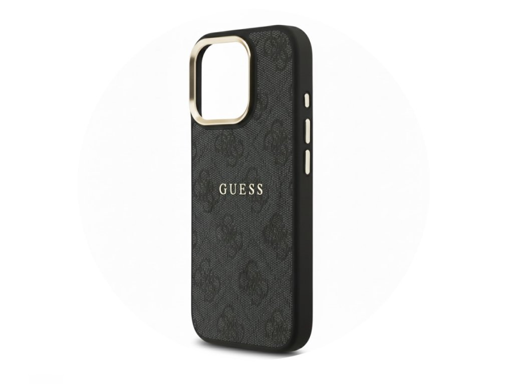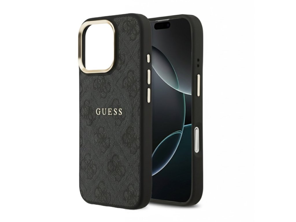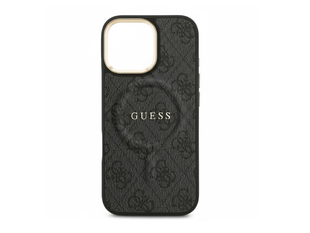 Guess PU Leather 4G Gold Frame MagSafe Zadní Kryt pro iPhone 17 – černá