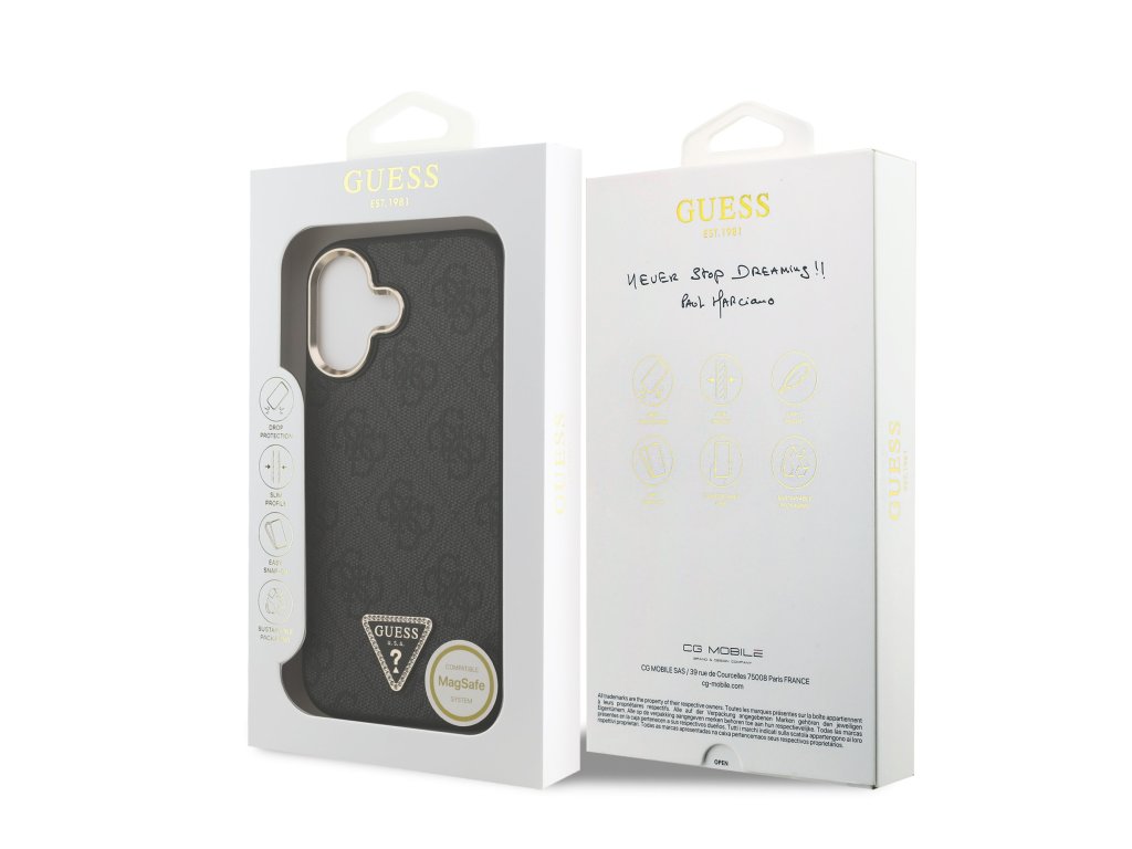Guess PU Leather 4G Strass Triangle Logo Gold Frame MagSafe Zadní Kryt pro iPhone 17 – černá