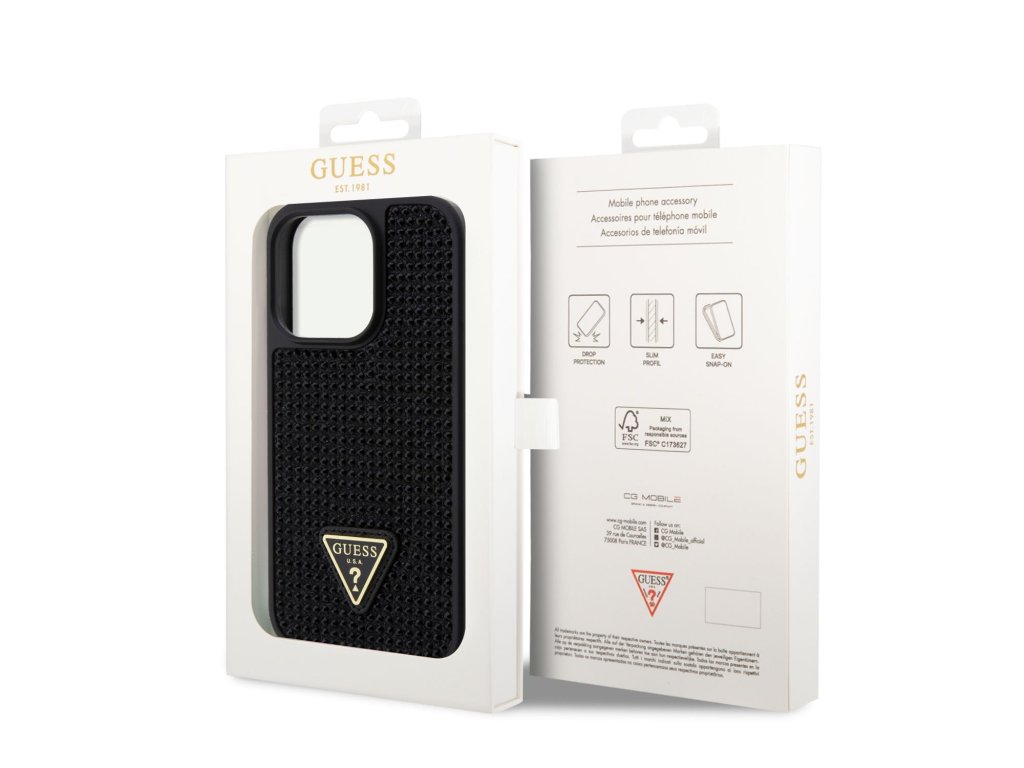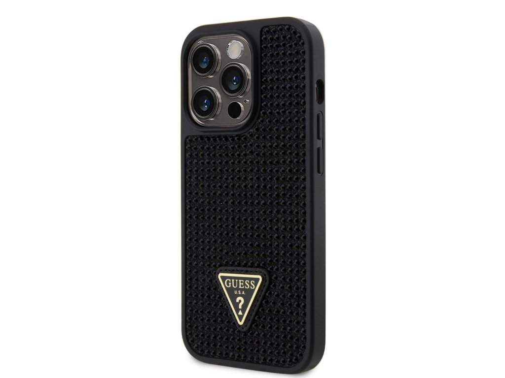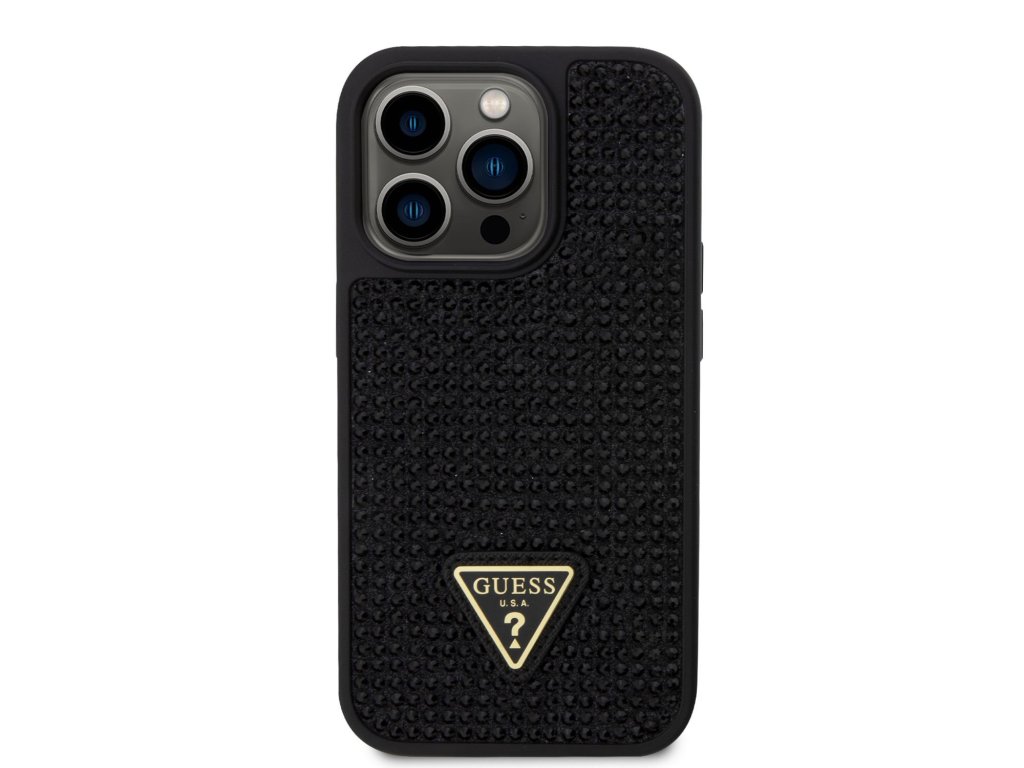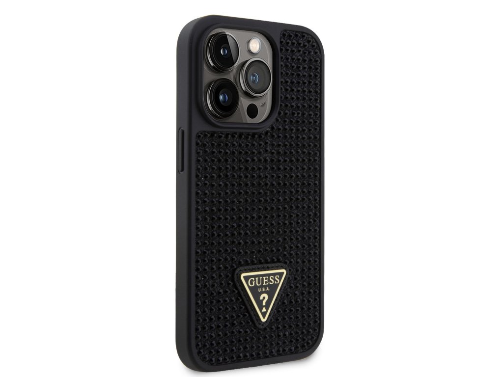 Guess Rhinestones Triangle Metal Logo Kryt pro iPhone 14 Pro černý