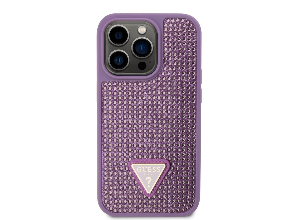 Guess Rhinestones Triangle Metal Logo Kryt pro iPhone 14 Pro fialový