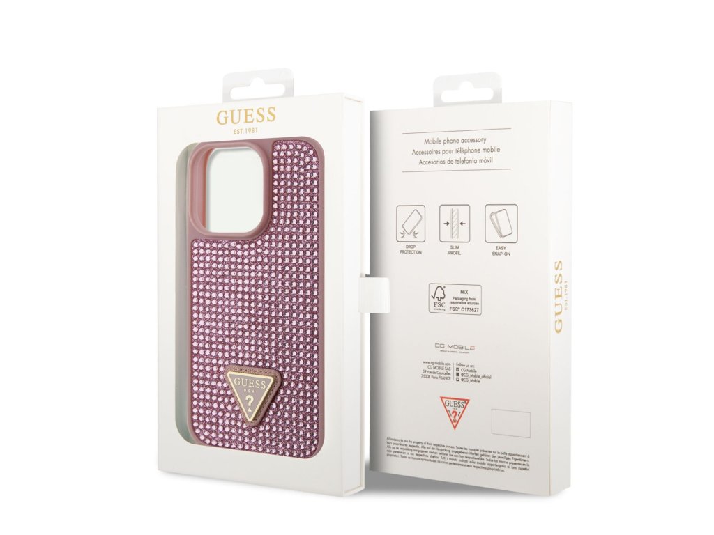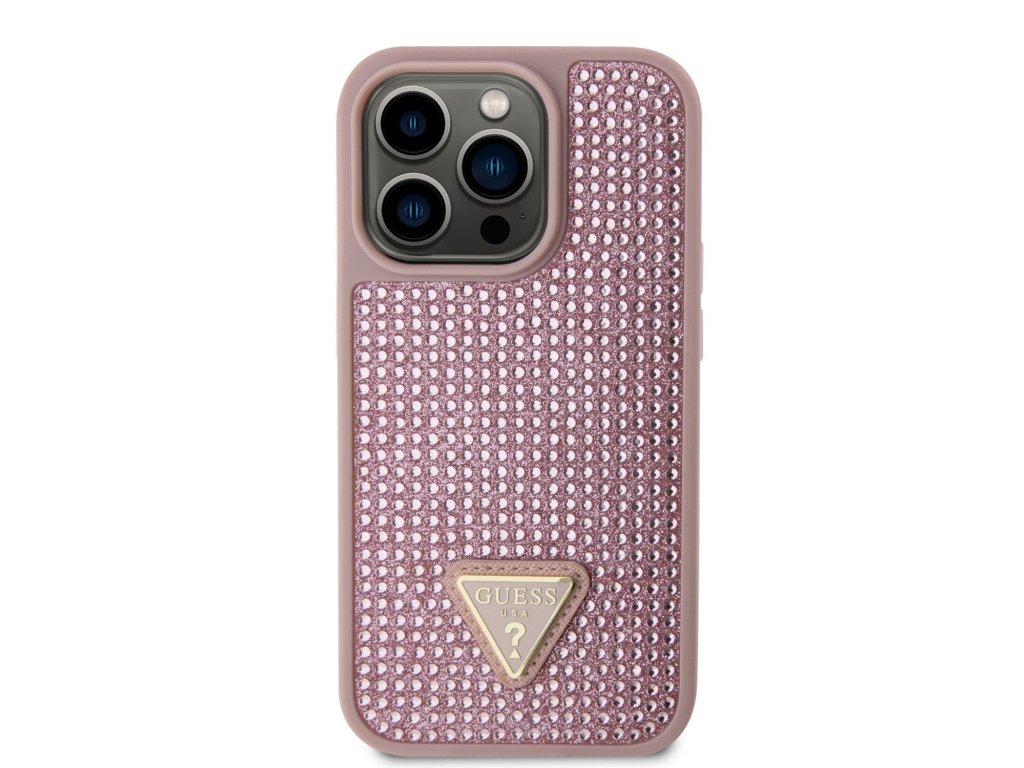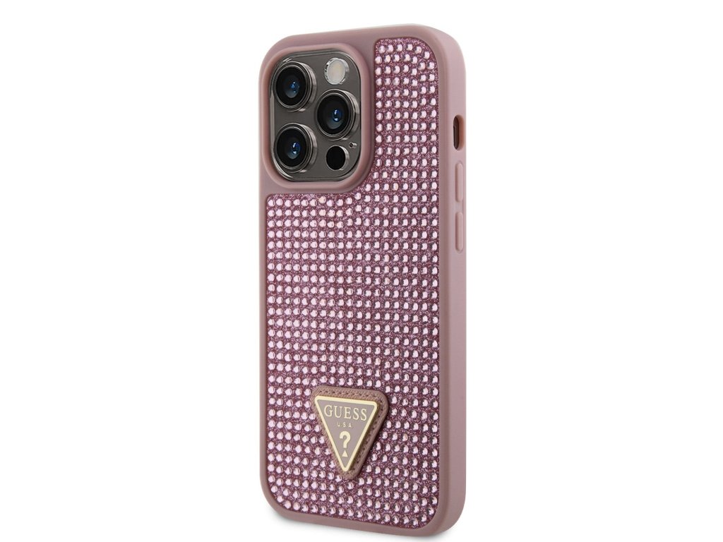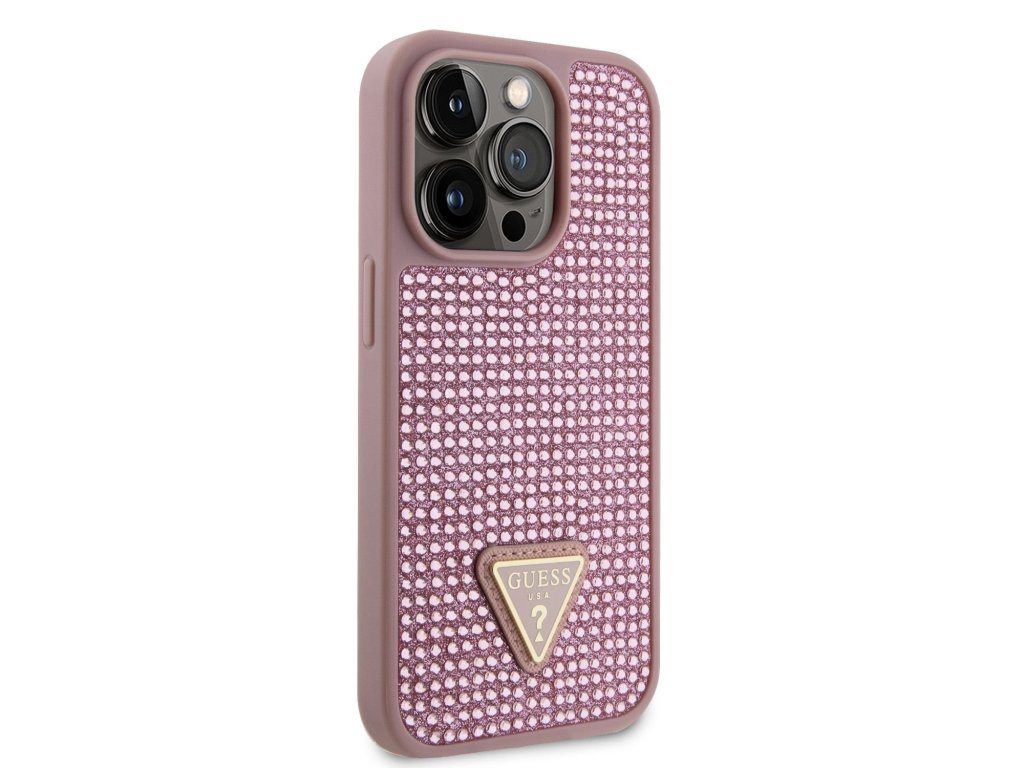 Guess Rhinestones Triangle Metal Logo Kryt pro iPhone 14 Pro růžový