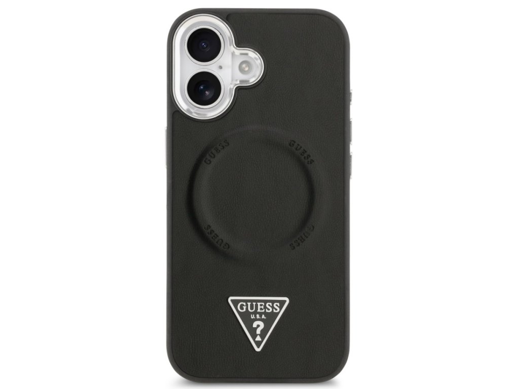 Guess zadní kryt pro iPhone 17, PU Kůže Triangle Logo MagSafe - černá