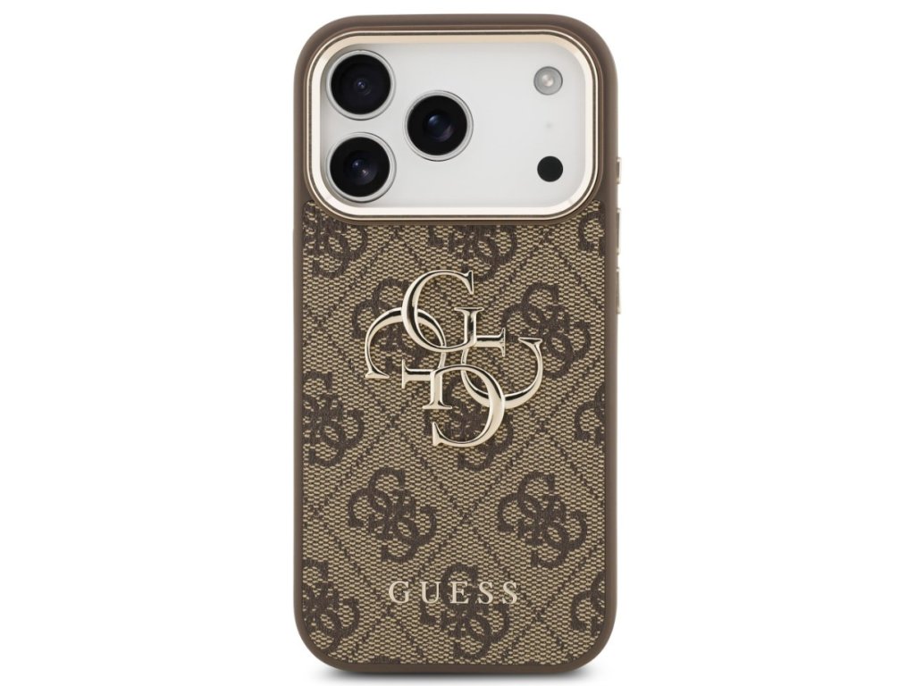 Guess zadní kryt pro iPhone 17 Pro Max, PU Kůže 4G Metal Logo Gold Frame - hnědá