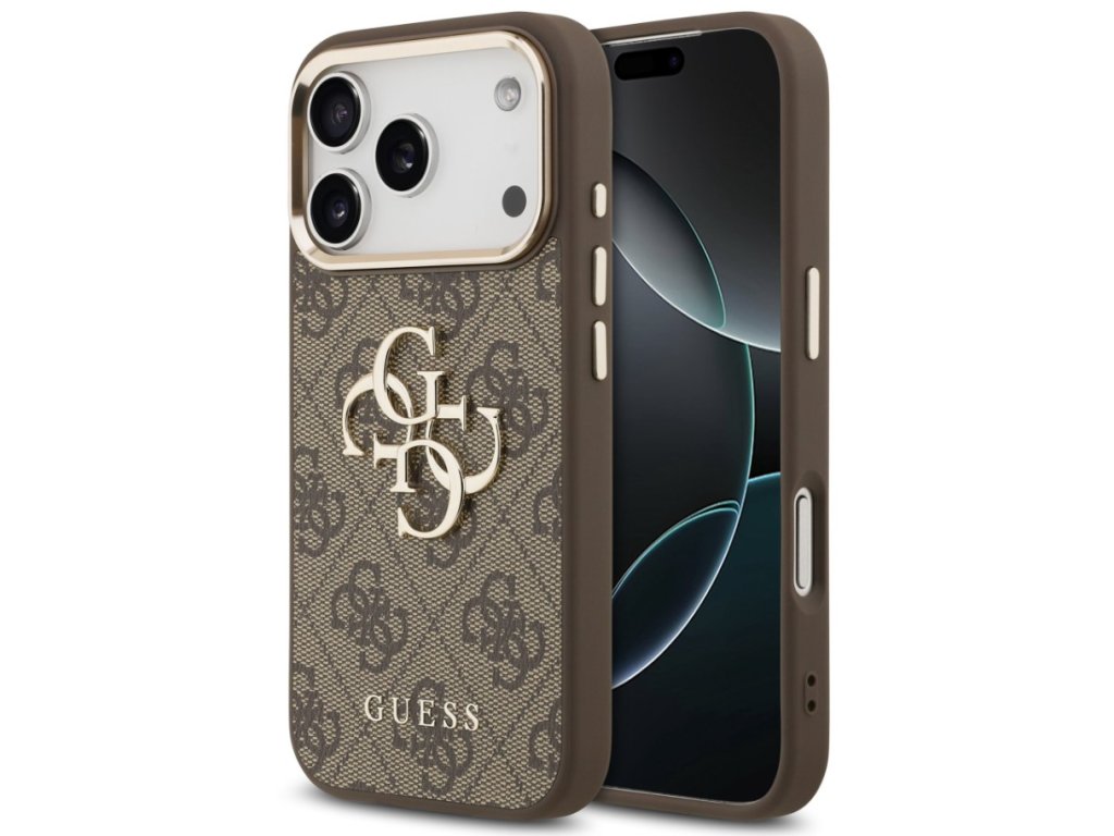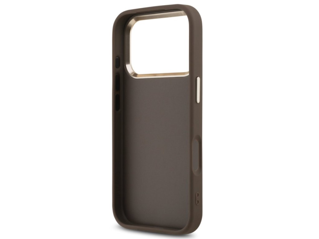 Guess zadní kryt pro iPhone 17 Pro Max, PU Kůže 4G Metal Logo Gold Frame - hnědá