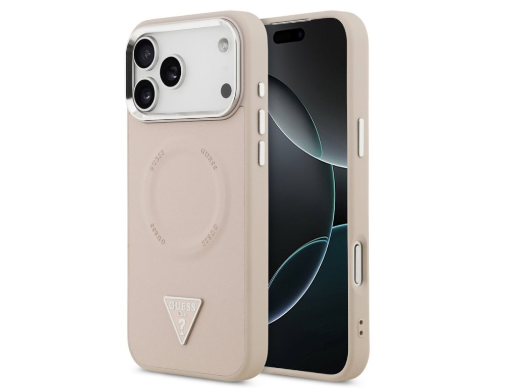 Guess zadní kryt pro iPhone 17 Pro Max, PU Kůže Triangle Logo MagSafe - růžová