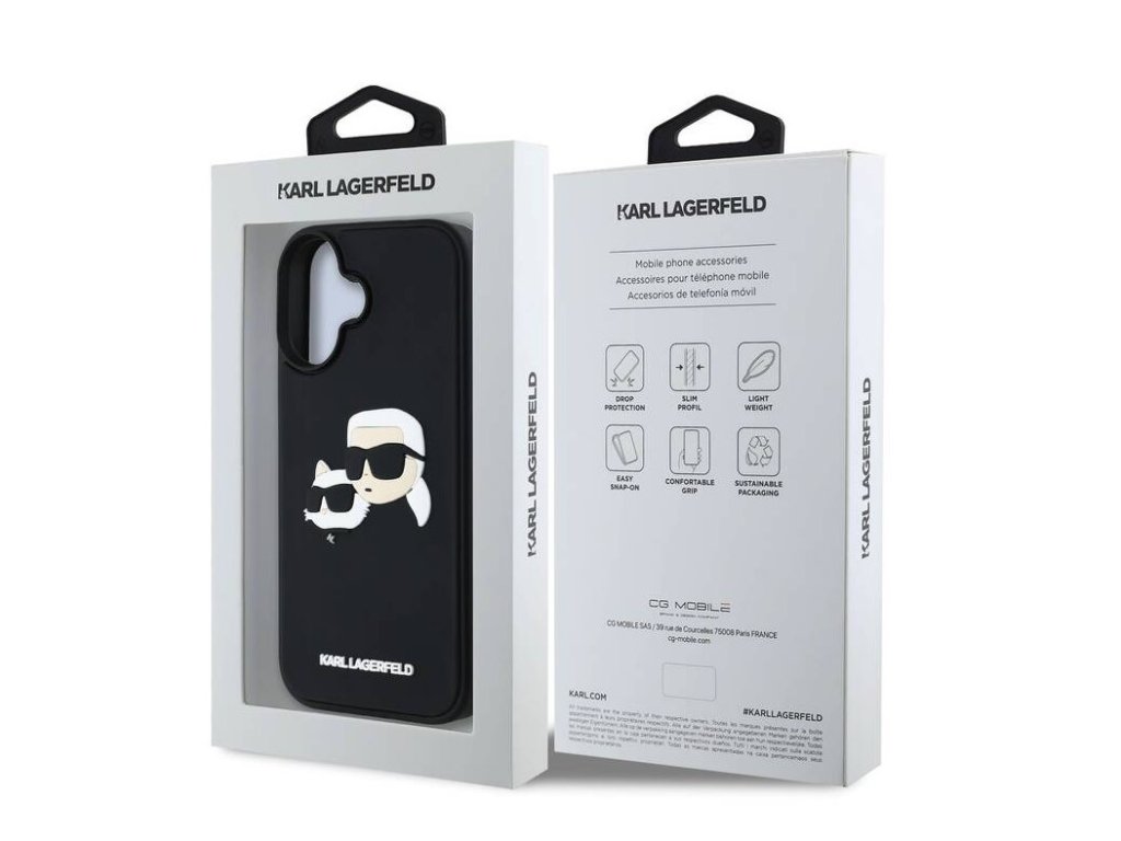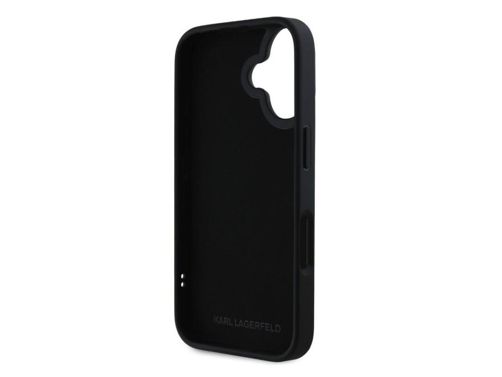 Karl Lagerfeld 3D Rubber Double Heads Zadní Kryt pro iPhone 16 Černá