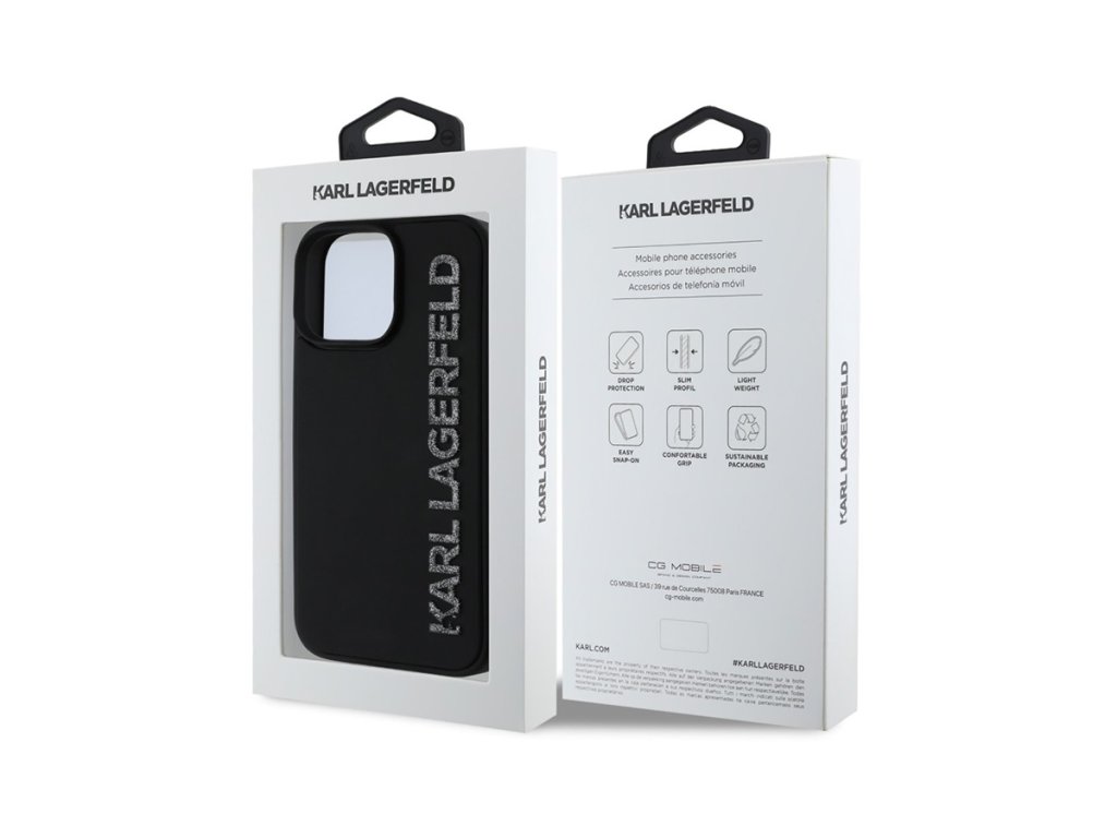 Karl Lagerfeld 3D Rubber Glitter Logo Zadní Kryt pro iPhone 15 Pro