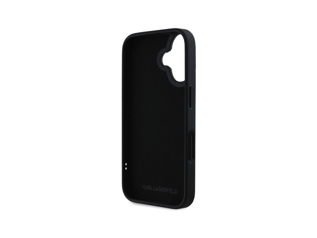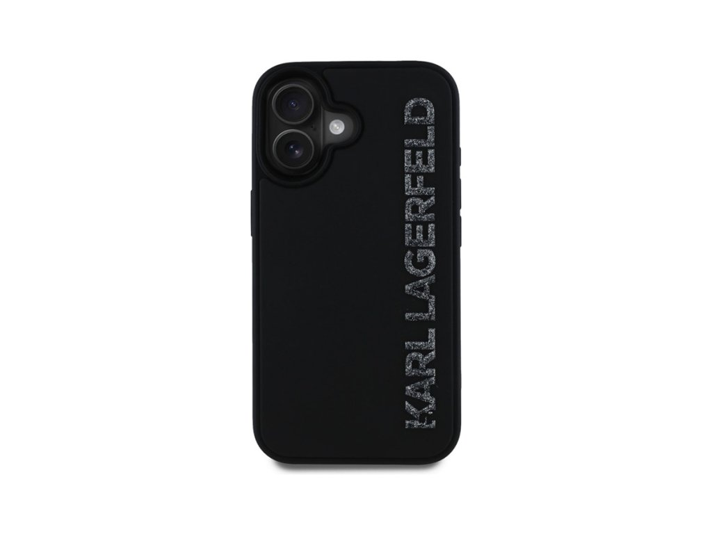 Karl Lagerfeld 3D Rubber Glitter Logo Zadní Kryt pro iPhone 16 Černá