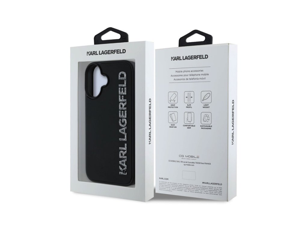 Karl Lagerfeld 3D Rubber Glitter Logo Zadní Kryt pro iPhone 16