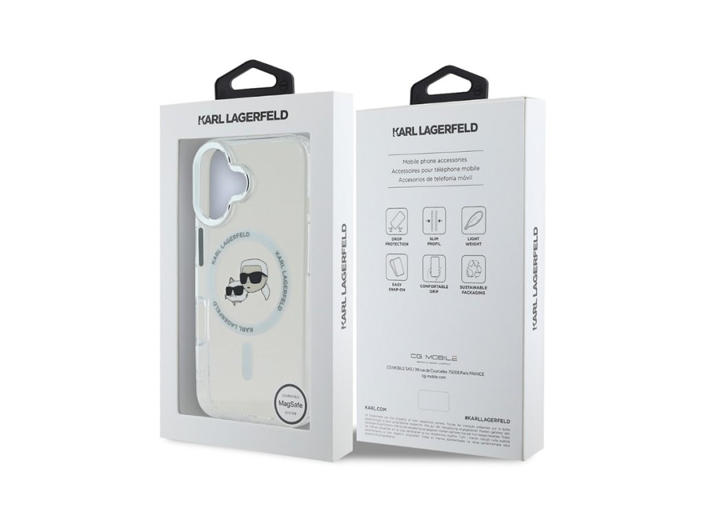 Karl Lagerfeld IML K&CH Heads Metal Frame MagSafe Zadní Kryt pro iPhone 16 Průhledná