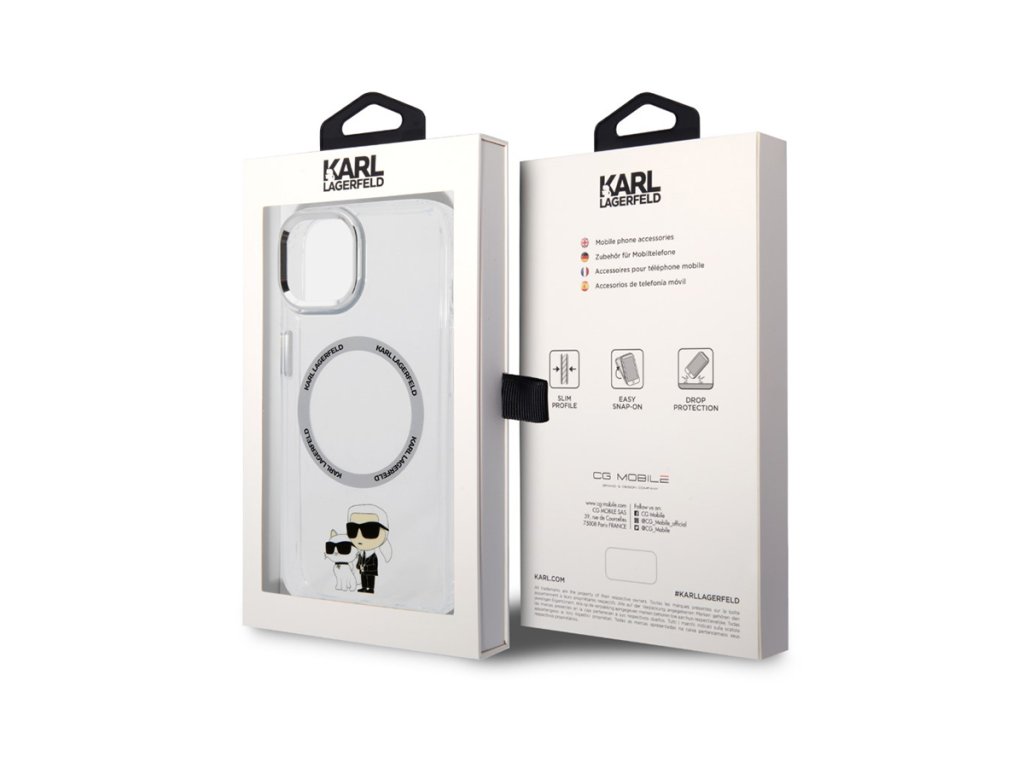 Karl Lagerfeld IML Karl and Choupette MagSafe Zadní Kryt pro iPhone 15 Průhledná