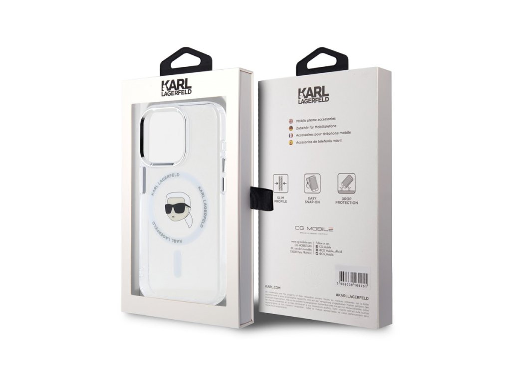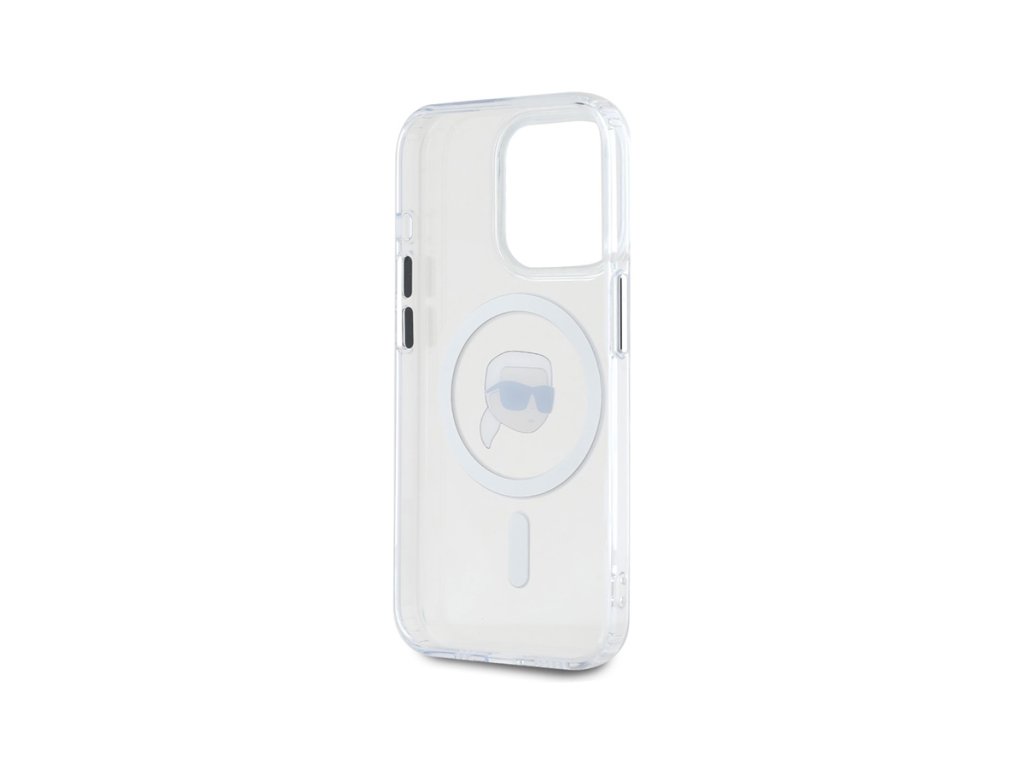 Karl Lagerfeld IML Karl Head Metal Frame MagSafe Zadní Kryt pro iPhone 15 Pro Průhledná