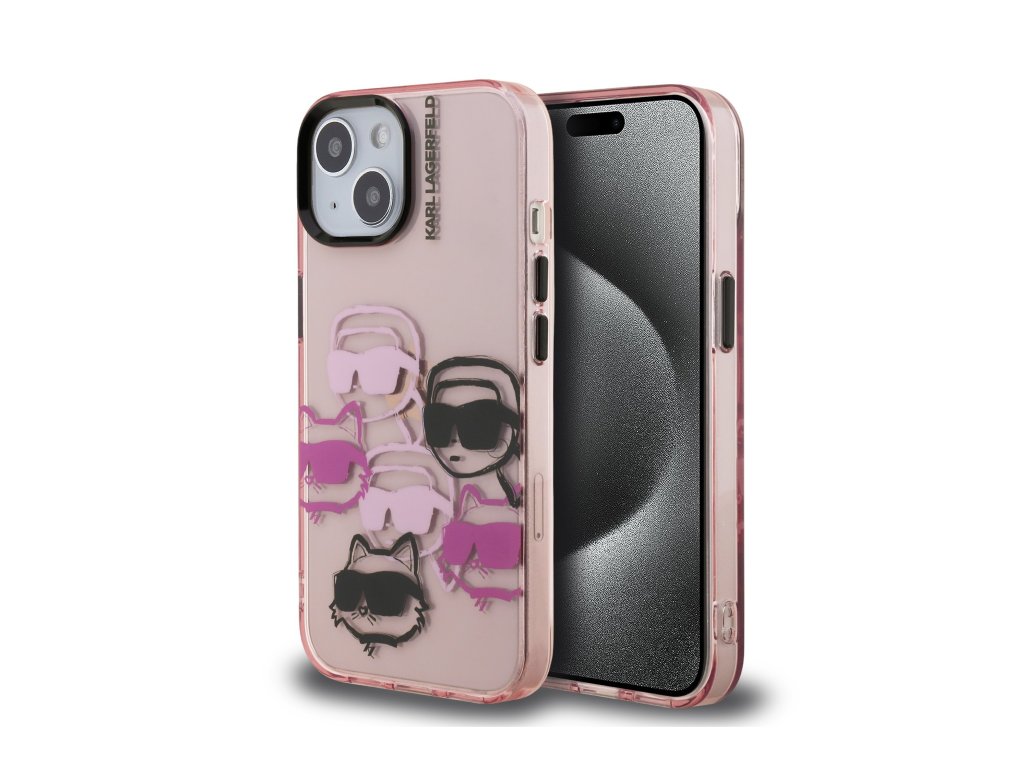 Karl Lagerfeld IML Multi K&CH Heads zadní kryt pro iPhone 15 – růžová
