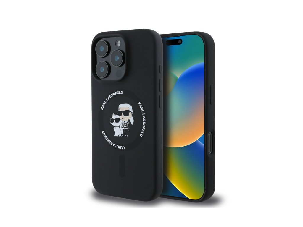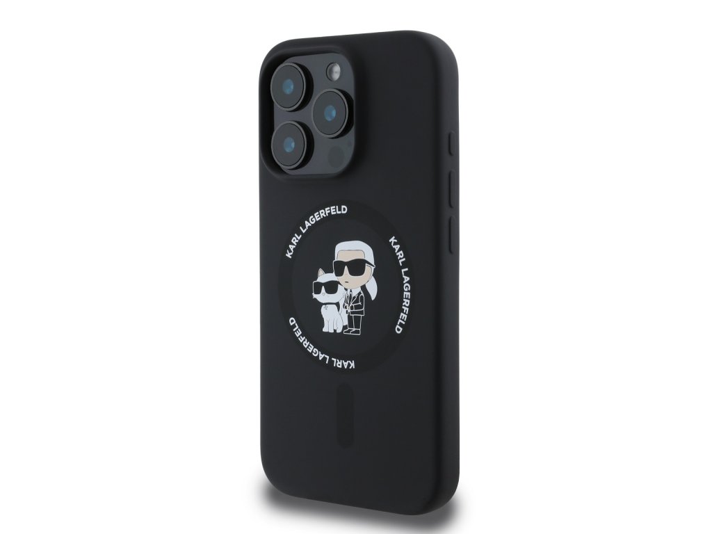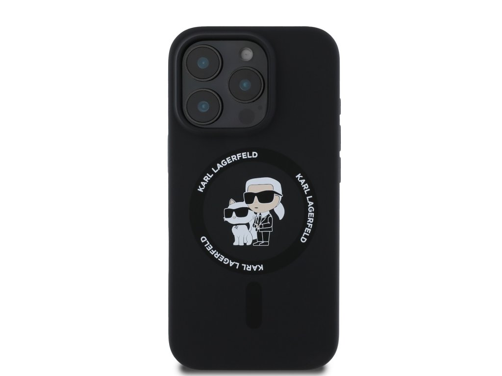 Karl Lagerfeld Liquid Silicone Karl and Choupette MagSafe zadní kryt pro iPhone 16 Pro – černá