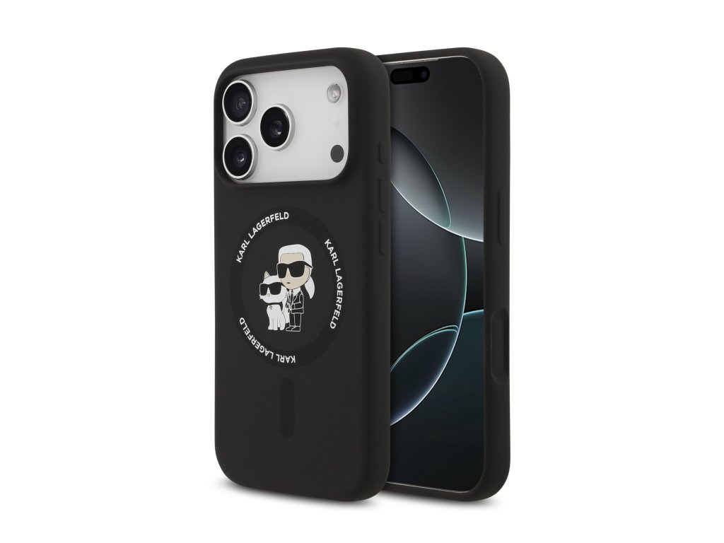 Karl Lagerfeld Liquid Silicone Karl and Choupette MagSafe zadní kryt pro iPhone 17 Pro – černá