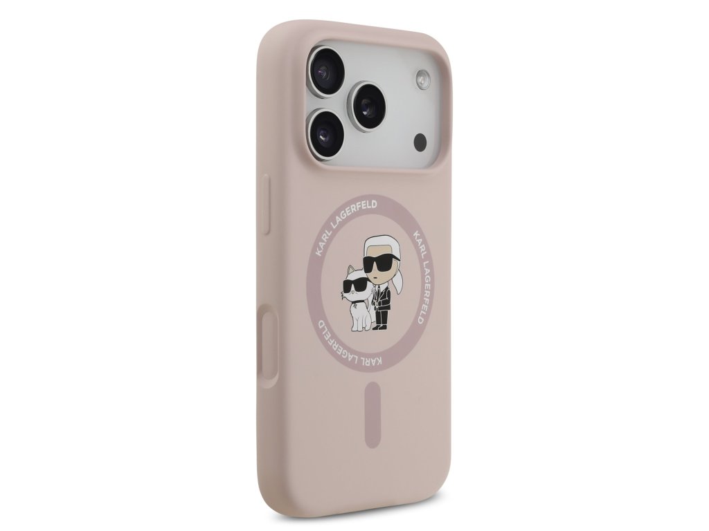 Karl Lagerfeld Liquid Silicone Karl and Choupette MagSafe zadní kryt pro iPhone 17 Pro – růžová