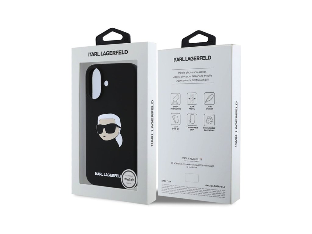 Karl Lagerfeld Liquid Silicone Karl Head MagSafe Zadní Kryt pro iPhone 16 Černá