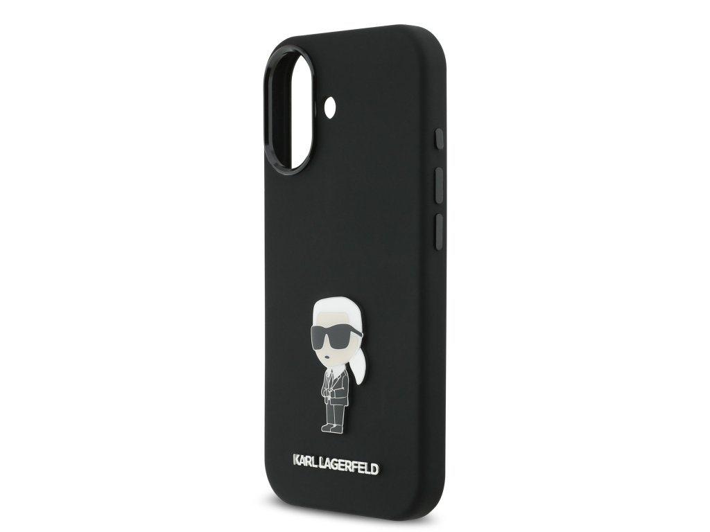 Karl Lagerfeld Liquid Silicone Metal Ikonik zadní kryt pro iPhone 17 – černá