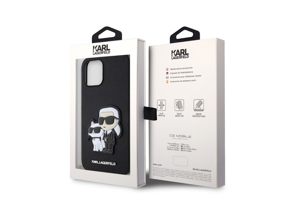 Kryt Karl Lagerfeld PU Saffiano Karl and Choupette je ideální volbou pro každého, kdo hledá spojení praktičnosti, ochrany a módního stylu v jednom doplňku.