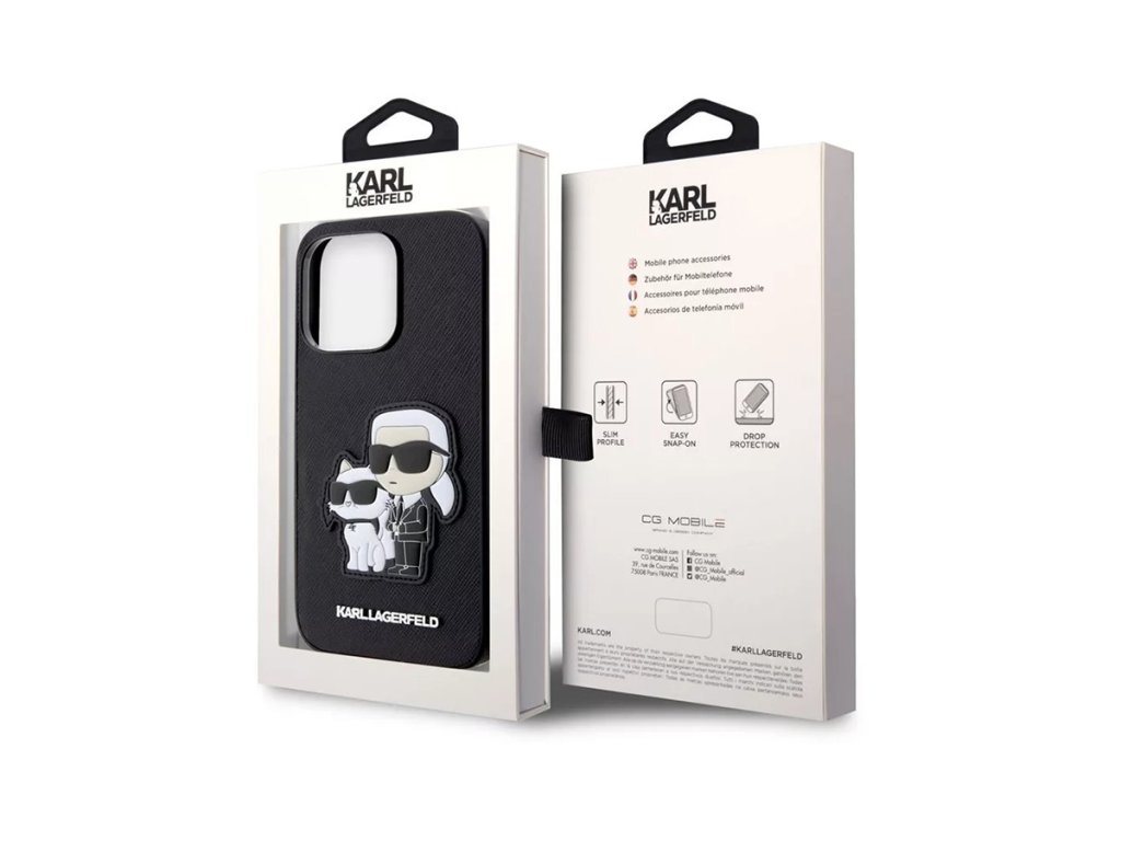 Karl Lagerfeld PU Saffiano Karl and Choupette Zadní Kryt pro iPhone 13 Pro Černá