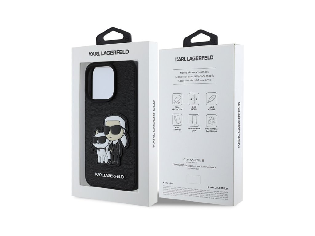 Karl Lagerfeld PU Saffiano Karl and Choupette Zadní Kryt pro iPhone 15 Pro Černá