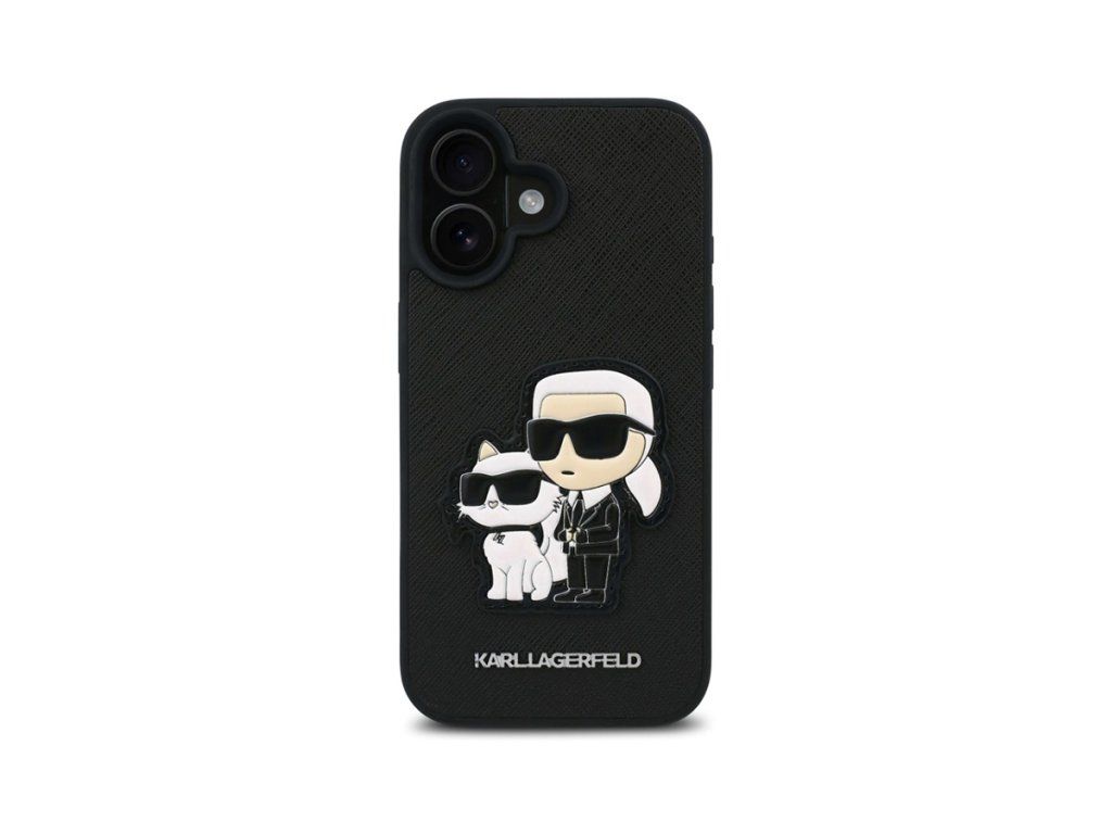 Karl Lagerfeld PU Saffiano Karl and Choupette Zadní Kryt pro iPhone 16 Černá