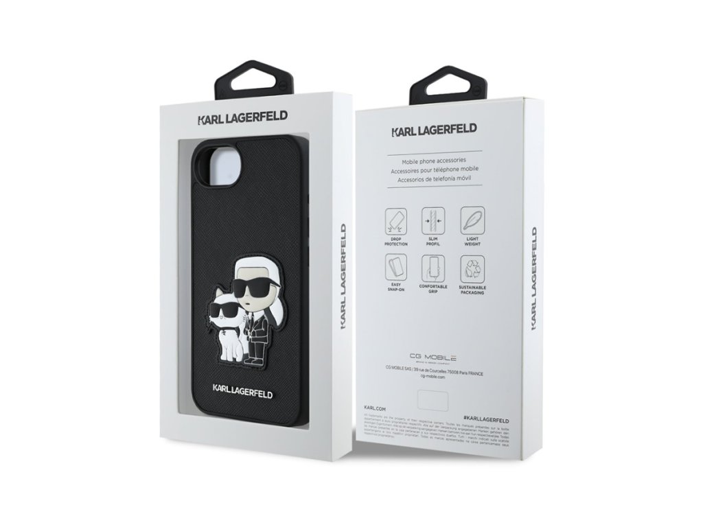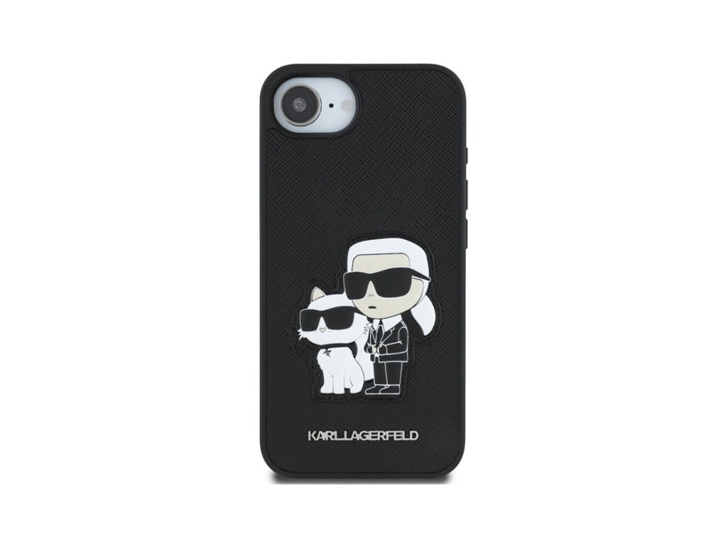 Karl Lagerfeld PU Saffiano Karl and Choupette Zadní Kryt pro iPhone 16e Černá