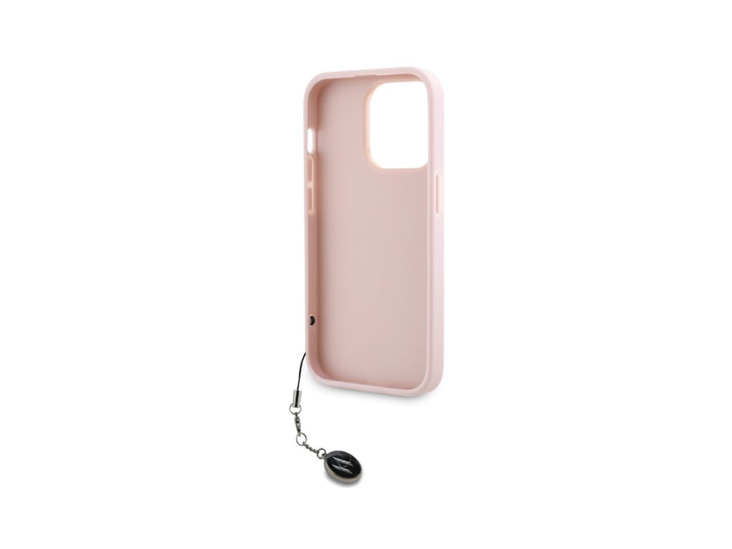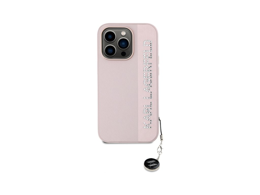 Karl Lagerfeld PU Saffiano Rhinestone Charm Zadní Kryt pro iPhone 14 Pro Růžová