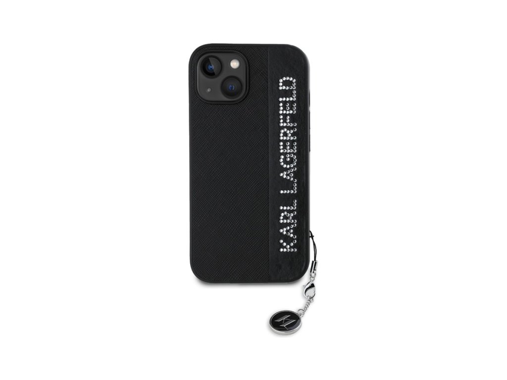 Karl Lagerfeld PU Saffiano Rhinestone Charm Zadní Kryt pro iPhone 15 Černá