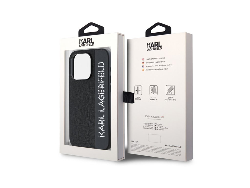 Karl Lagerfeld PU Saffiano Rhinestone Charm Zadní Kryt pro iPhone 15 Pro Černá