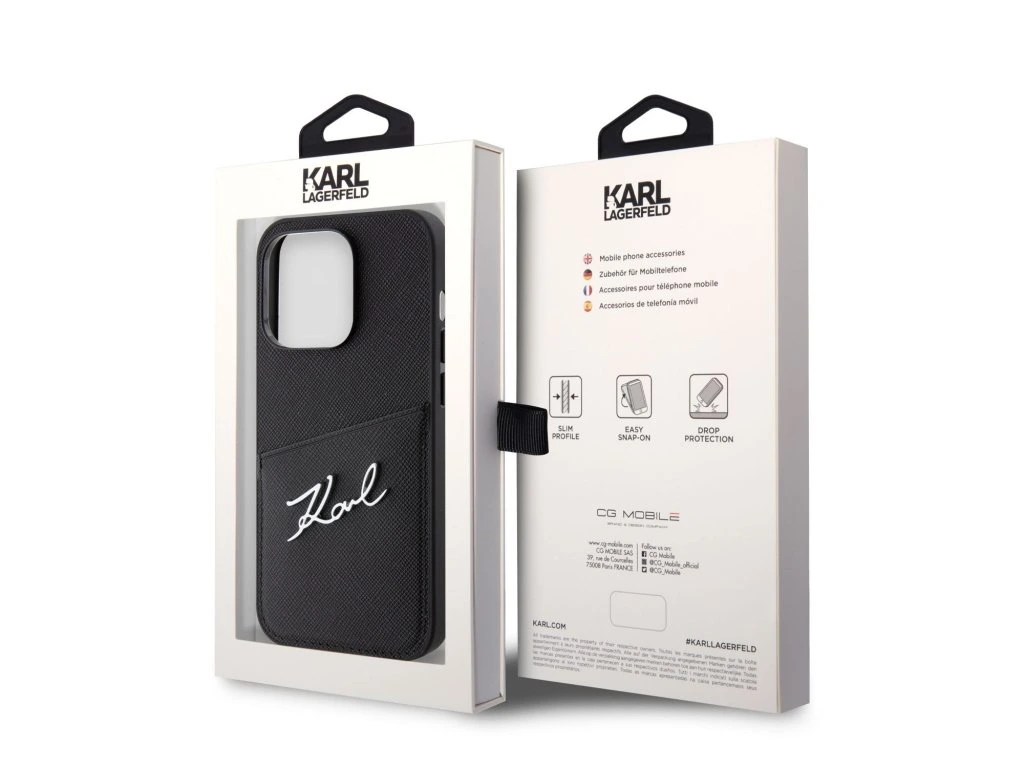 Karl Lagerfeld Saffiano Card Slot kryt pro telefon, vyrobený z pružného a zároveň pevného PU materiálu.