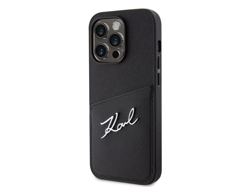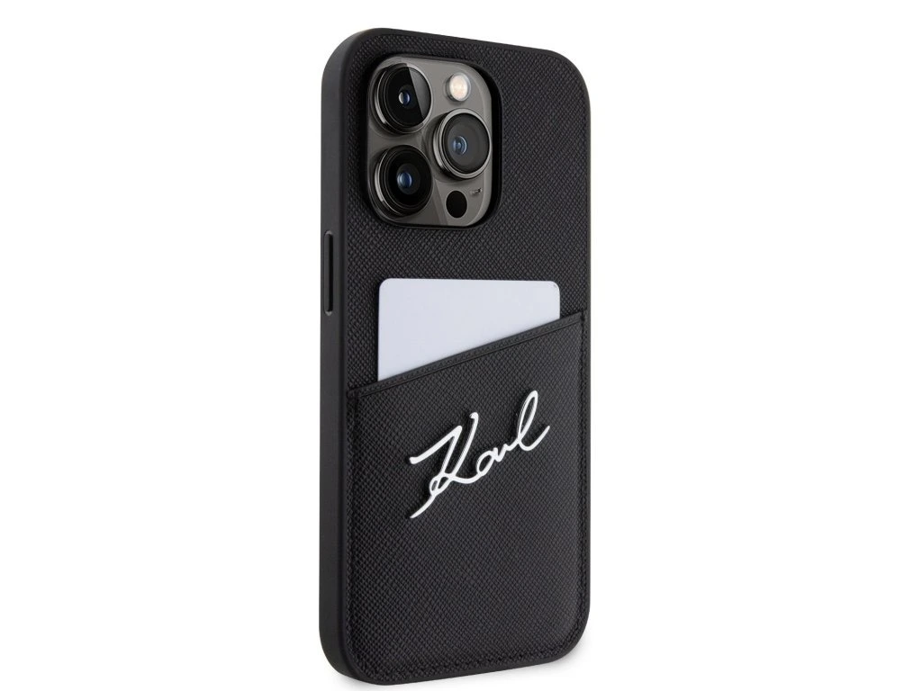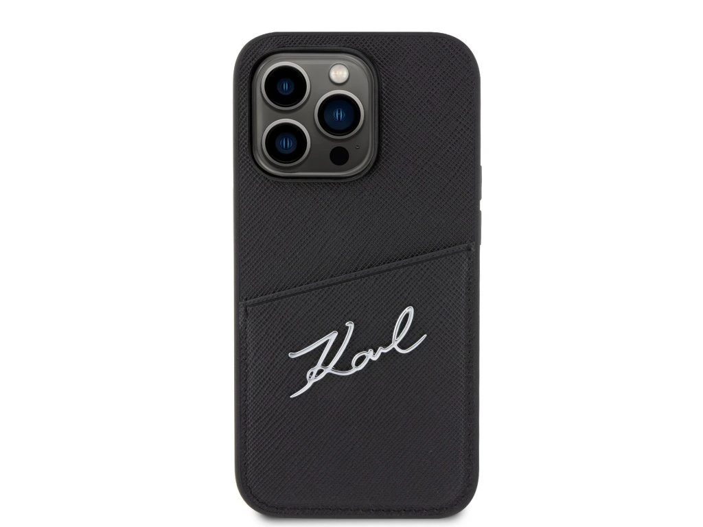 Karl Lagerfeld Saffiano Card Slot Metal Signature Zadní Kryt pro iPhone 14 Pro