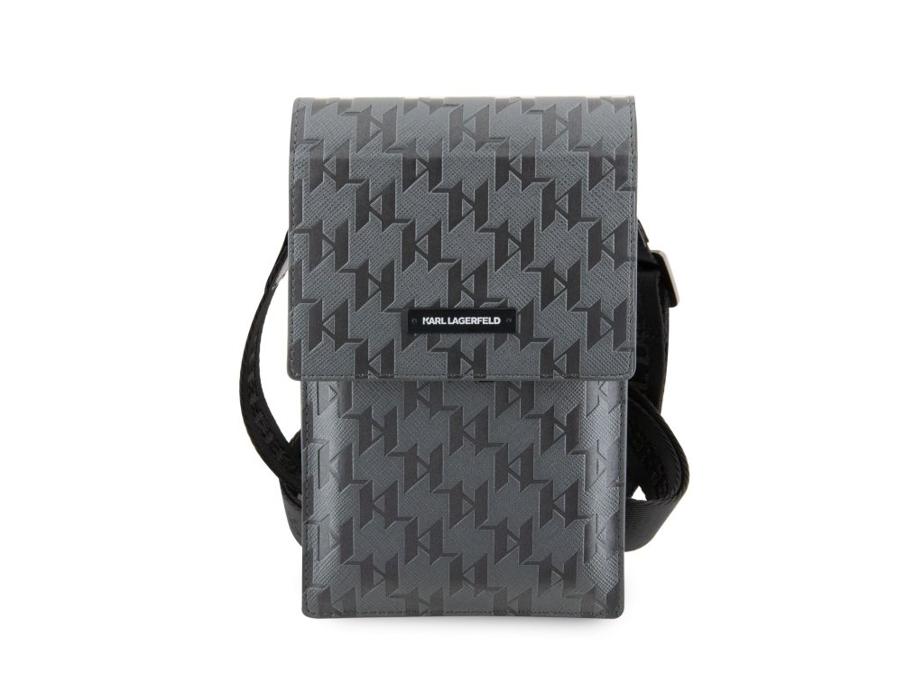 Karl Lagerfeld Saffiano Monogram Wallet Phone Bag stříbrný