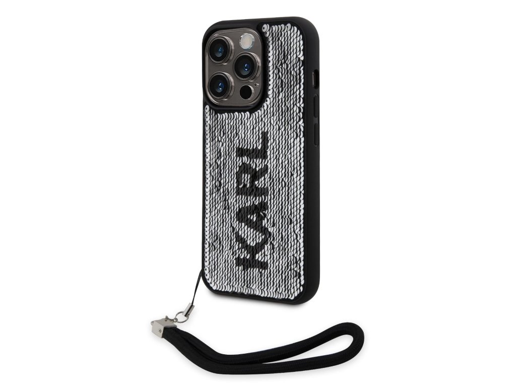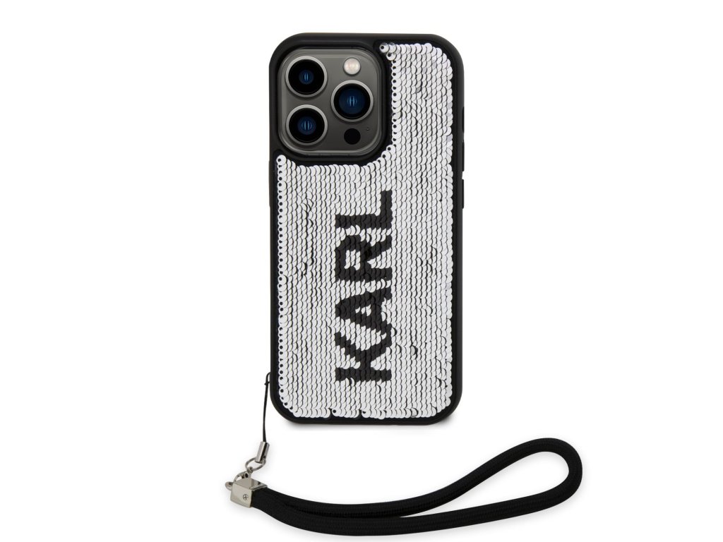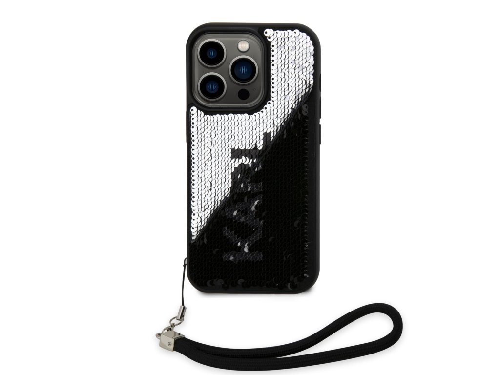 Karl Lagerfeld Sequins Reversible Zadní Kryt pro iPhone 14 Pro Black/Silver