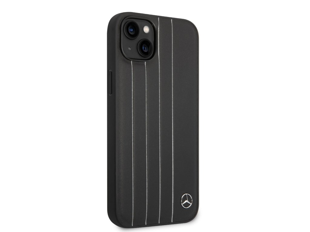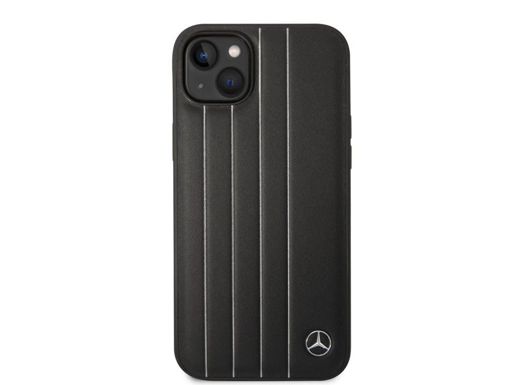 Mercedes Genuine Leather Star Zadní Kryt pro iPhone 14 Plus Black