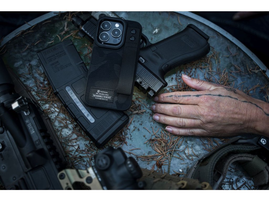 Hlavní přednosti krytu na mobil Tactical Camo Troop Drag Strap Kryt pro Apple iPhone 13 Pro Black
