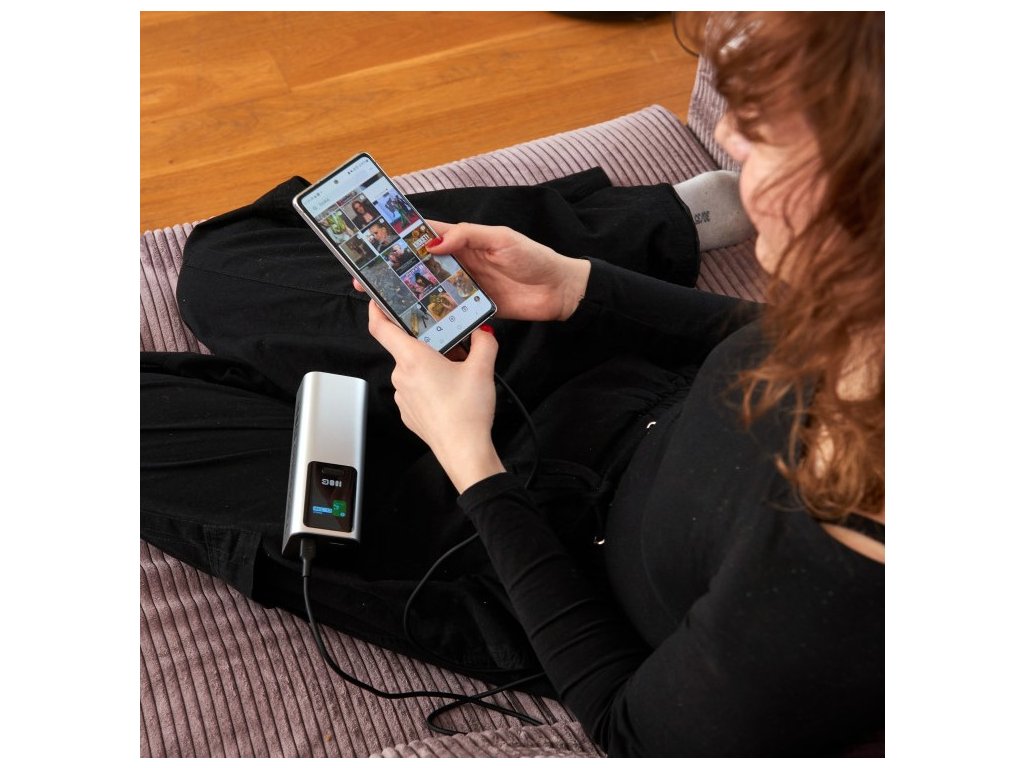 Na přehledném displeji získáte okamžitou informaci o aktuálním stavu nabití, zátěži, počtu cyklů, teplotě zařízení i reálné kapacitě powerbanky. Mějte vše pod dohledem a pod kontrolou.