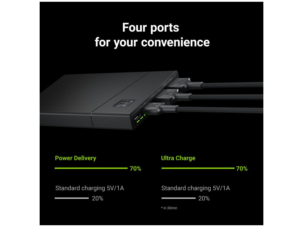 PBGC02S Power Bank Green Cell GC PowerPlay10S 10000mAh s rychlým nabíjením 2x USB Ultra Charge a 2x USB-C PD 18W