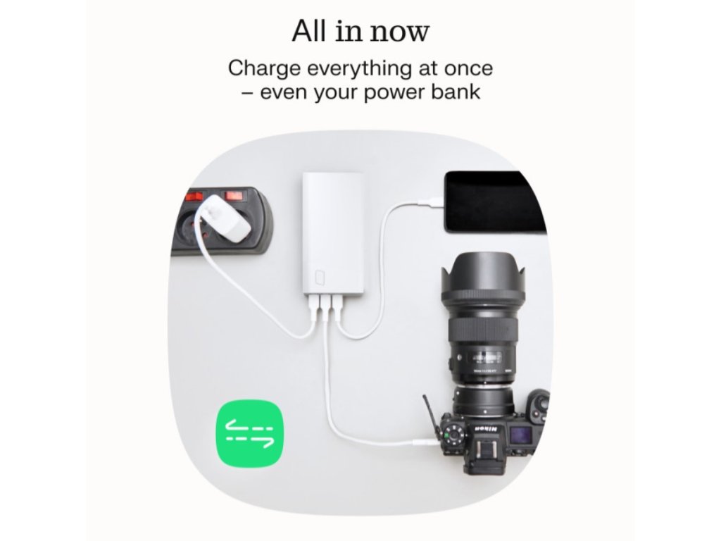 Se čtyřmi porty můžete napájet více zařízení najednou. Dva USB-C vstupy navíc umožňují flexibilní nabíjení samotné powerbanky. Vysoký výkon zaručuje efektivní nabití bez zbytečného čekání.