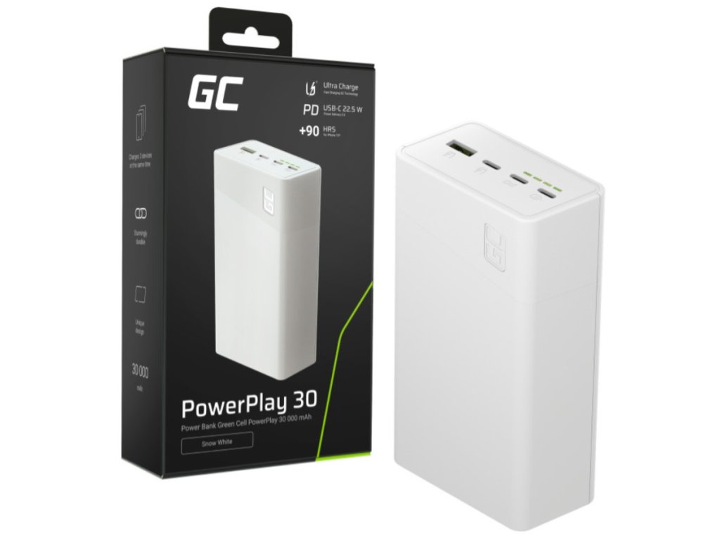 Greencell PowerPlay 30 powerbanka 30,000mAh, 22.5W, 4 porty, bílá