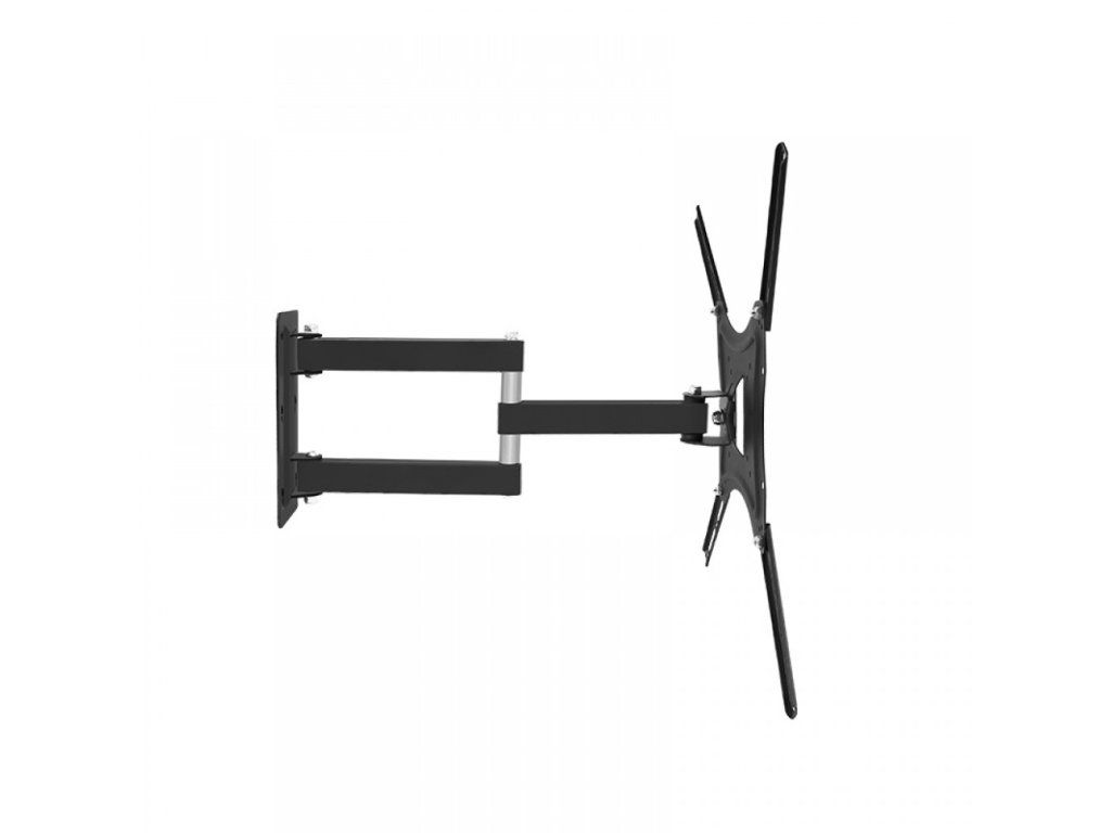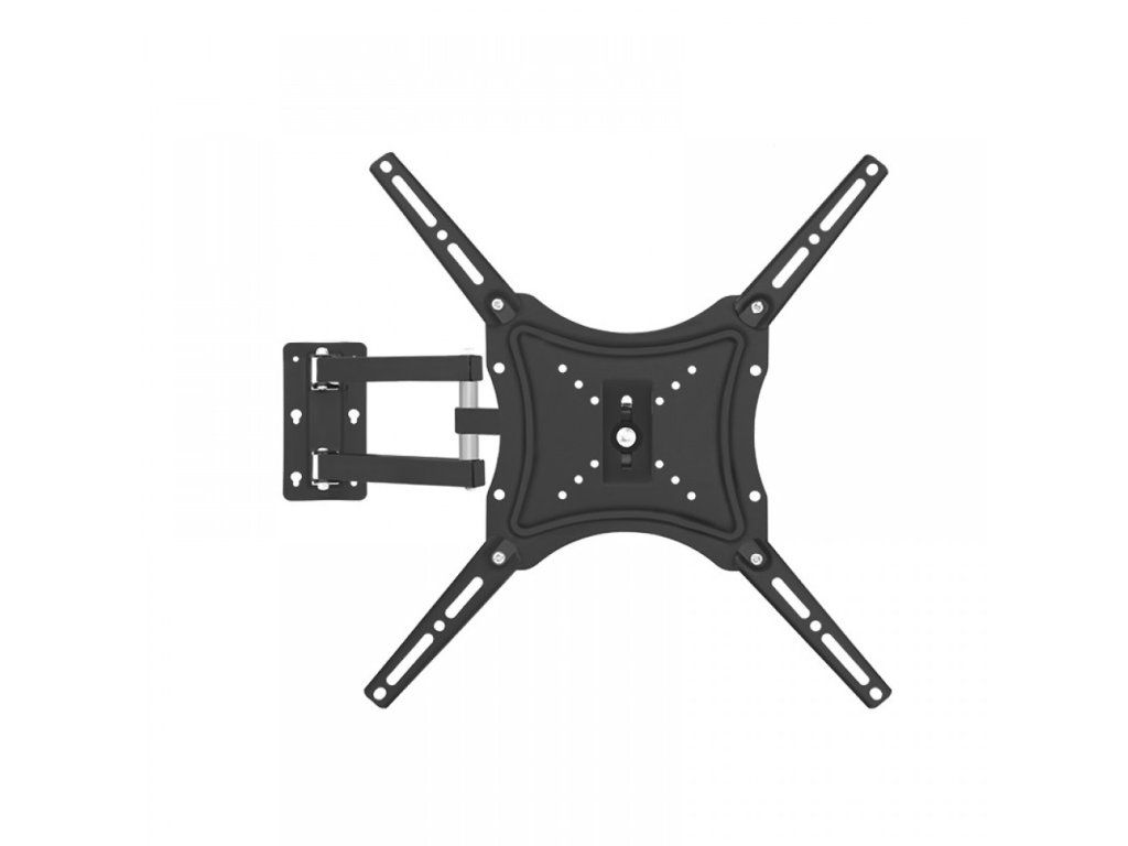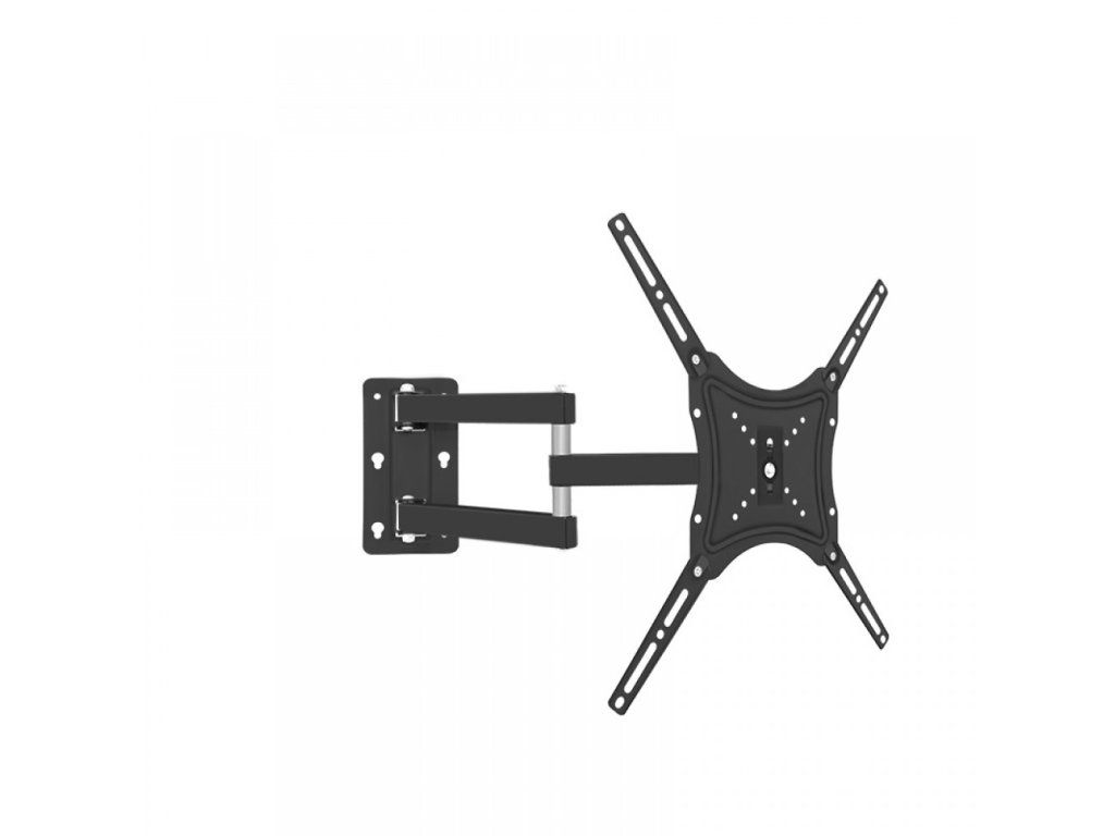 Kompaktní otočný držák na TV s úhlopříčkou 14" až 55", ideální pro všechny typy obrazovek. Umožňuje naklápění i otáčení a je kompatibilní s VESA do 400×400 mm. Stabilní kovová konstrukce v černé barvě zajišťuje pevné uchycení a snadnou manipulaci.