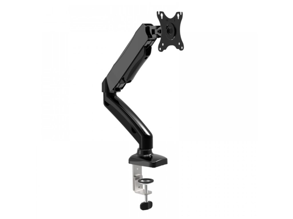 Stolní držák pro obrazovky 13″–32″ s nosností do 12 kg, kovovým ramenem a širokým rozsahem náklonu a otočení. Kompatibilní s VESA 75×75 a 100×100 mm.