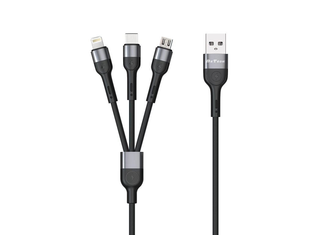 Nabíjecí kabel DeTech icro USB, Lighting, Type-C 1 m - černý