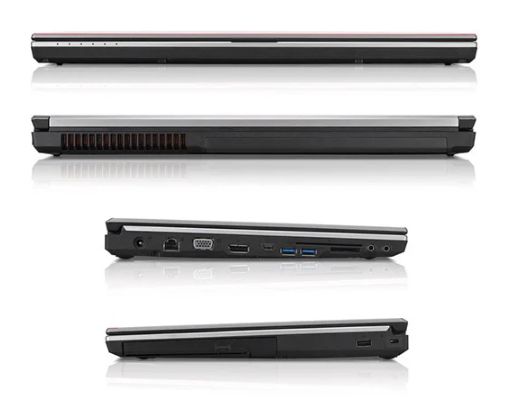 Notebook o rozměrech 380 x 257 x 35 mm je ideální 15.6palcovou pracovní stanicí, což dokládá i jeho výrazná tloušťka. Tato tloušťka je způsobena možností vybavit zařízení multifunkční šachtou, která umožňuje vložení optické mechaniky nebo další baterie, zvyšující výdrž při práci na cestách. Hmotnost notebooku se může lišit v závislosti na zvolené konfiguraci, avšak v testované variantě vážil 2636 g. K celkové hmotnosti při přenosu zařízení je třeba připočítat ještě napájecí adaptér o hmotnosti 932 g s rozměry 155 x 80 x 40 mm. Tento notebook tedy kombinuje robustní konstrukci s flexibilitou, která vyhovuje požadavkům profesionálních uživatelů.