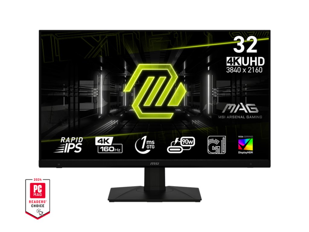 Monitor - 32" IPS 4K UHD displej (3840x2160px), Frekvence 160 Hz, Formát obrazu 16:9, Doba odezvy 1 ms, Kontrast 1000:1, Jas 440 cd/m2, HDMI, DisplayPort, USB 2.0, USB-C, Freesync, Černá, Rovný
