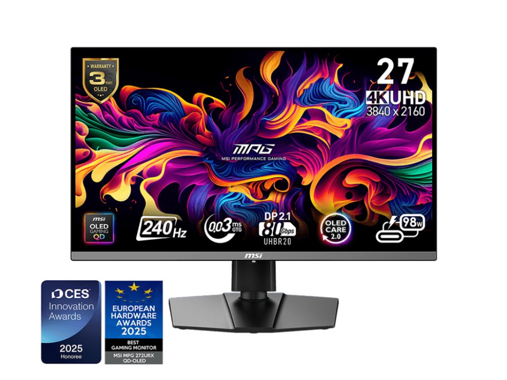 Monitor - 27" OLED 4K UHD displej (3840x2160px), Frekvence 240 Hz, Formát obrazu 16:9, Doba odezvy 0,03 ms, Kontrast 1500000:1, Jas 250 cd/m2, HDMI, DisplayPort, USB 3.0, USB-C, G-SYNC, Černá, Rovný