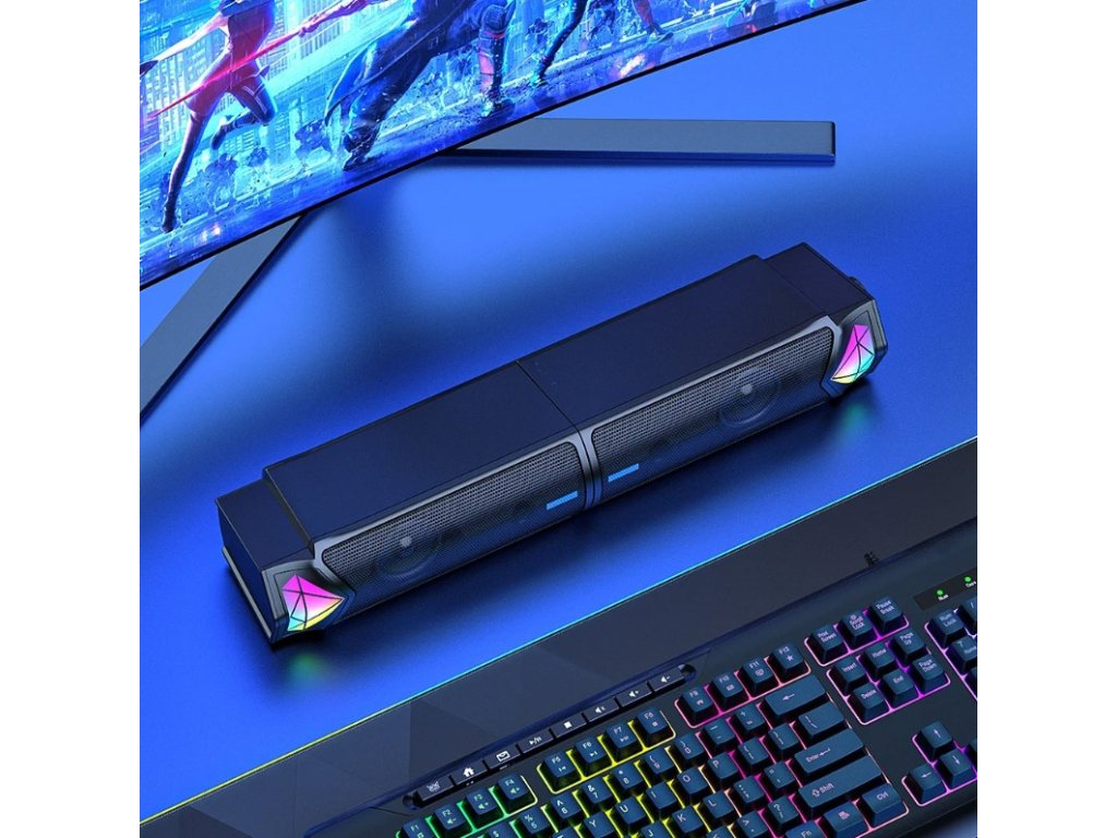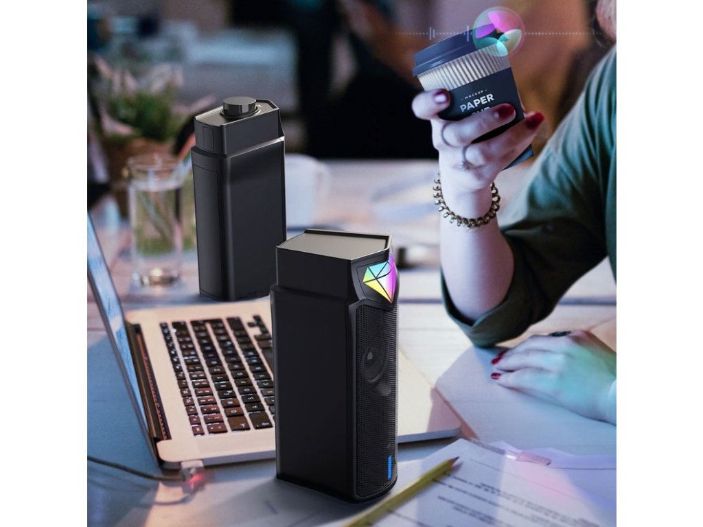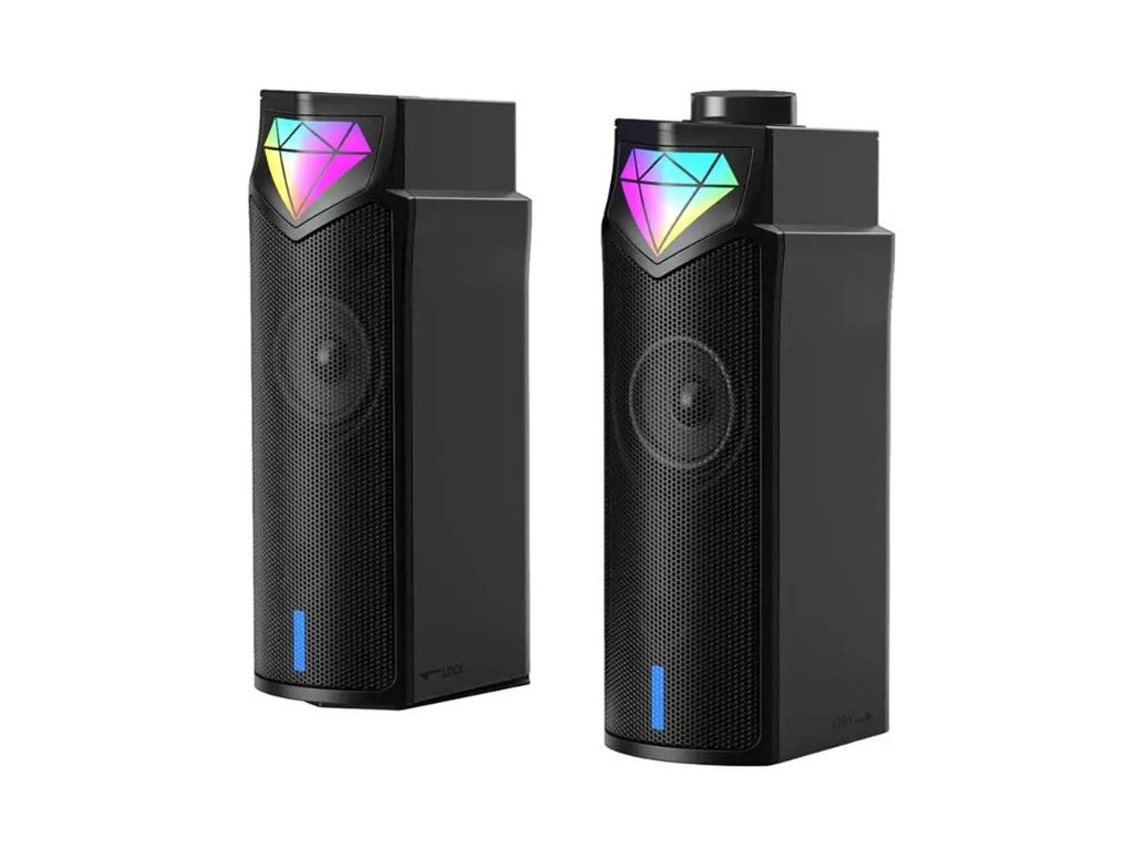 - RGB podsvícení: RGB osvětlení dodává reproduktorům atraktivní vzhled. Měnící se barvy vytvářejí příjemný vizuální zážitek, který se dokonale hodí k hernímu setupu nebo modernímu pracovnímu prostoru.
