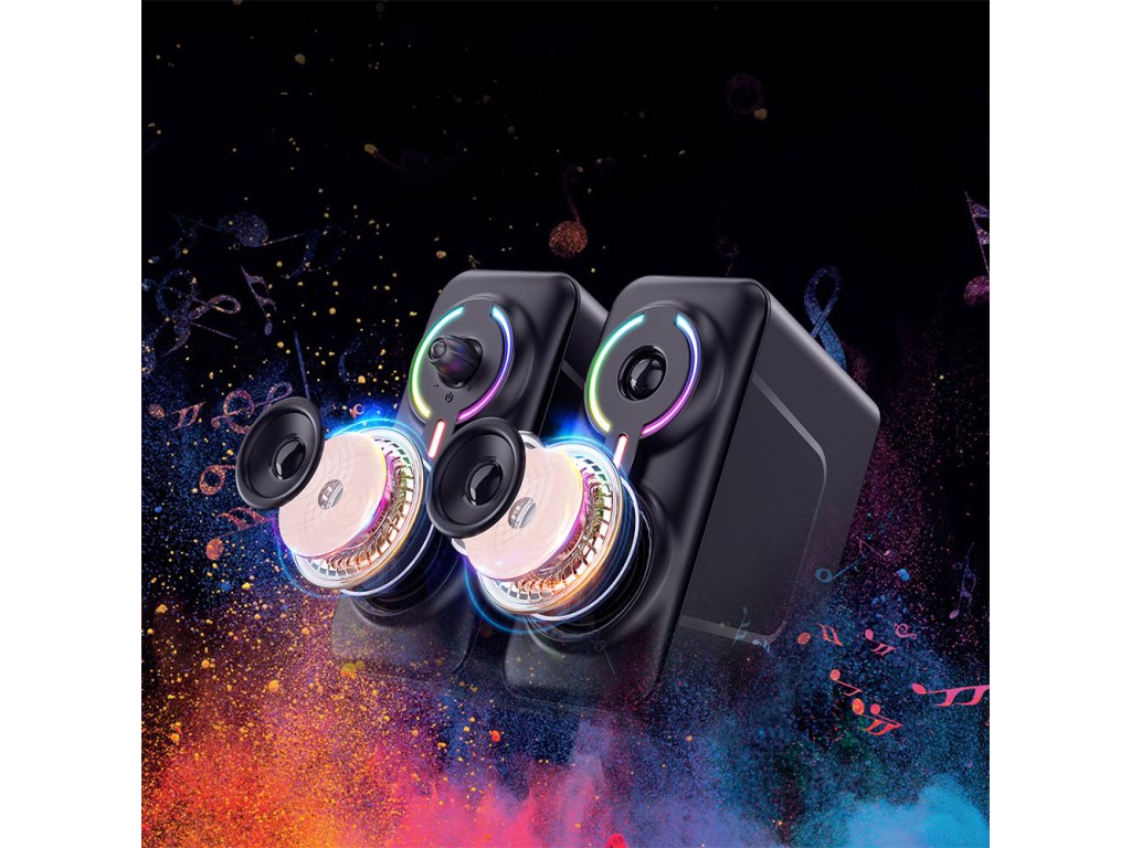 Reproduktory Onikuma jsou vybaveny RGB podsvícením. Je k dispozici v až 6 různých režimech, díky kterým si je zcela přizpůsobíte svým preferencím a navíc dokonale podtrhne herní charakter vašeho zařízení. Správa barevných režimů provádí pomocí tlačítka na reproduktoru. Vyjádřete svou náladu pomocí správného režimu!
