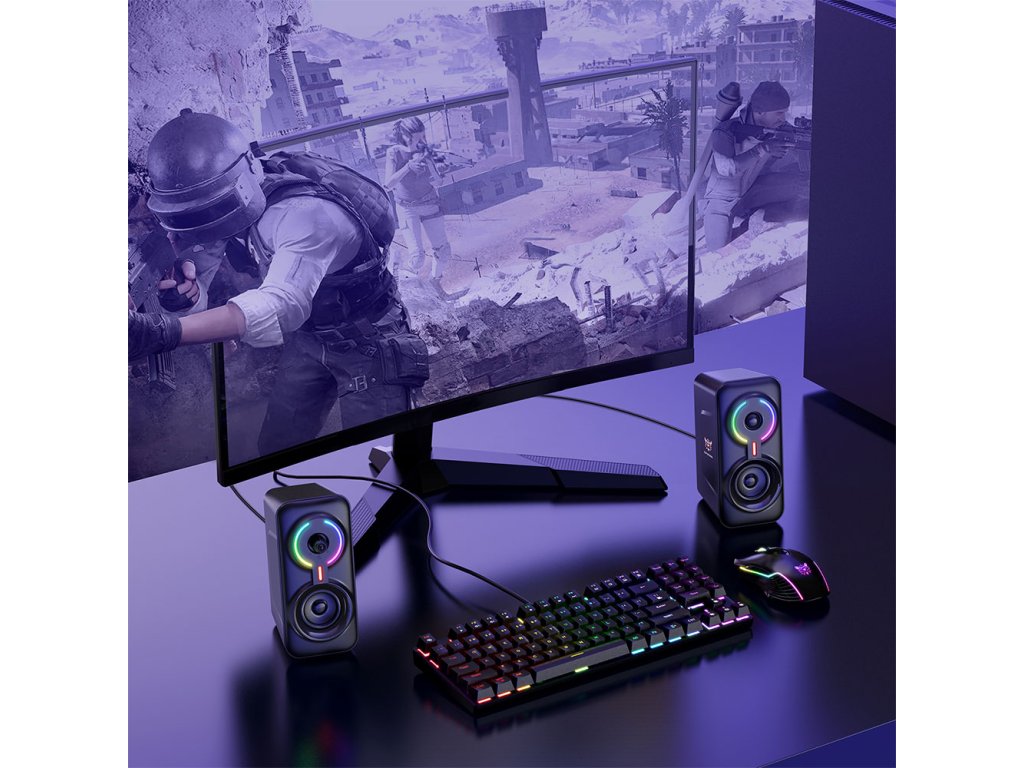 Onikuma L6 jsou reproduktory, které jsou skvělou volbou pro každého milovníka herního vybavení. Jsou ideální pro každodenní poslech hudby, procházení Youtube nebo hraní her. I přes svou malou velikost nabízejí mimořádně čistý zvuk ve vysoké kvalitě. Díky barevnému RGB podsvícení a modernímu designu skvěle hodí do hráčského pokoje. Reproduktory jsou také velmi univerzální, můžete je připojit jak přes Mini Jack konektor, tak bezdrátově díky Bluetooth 5.0 modulu, USB kabel je nutný pro jejich podsvícení. Ovládání provádí pomocí otočného knoflíku umístěného v jednom z nich. Onikuma L6 je skvělou volbou pro váš psací stůl!
