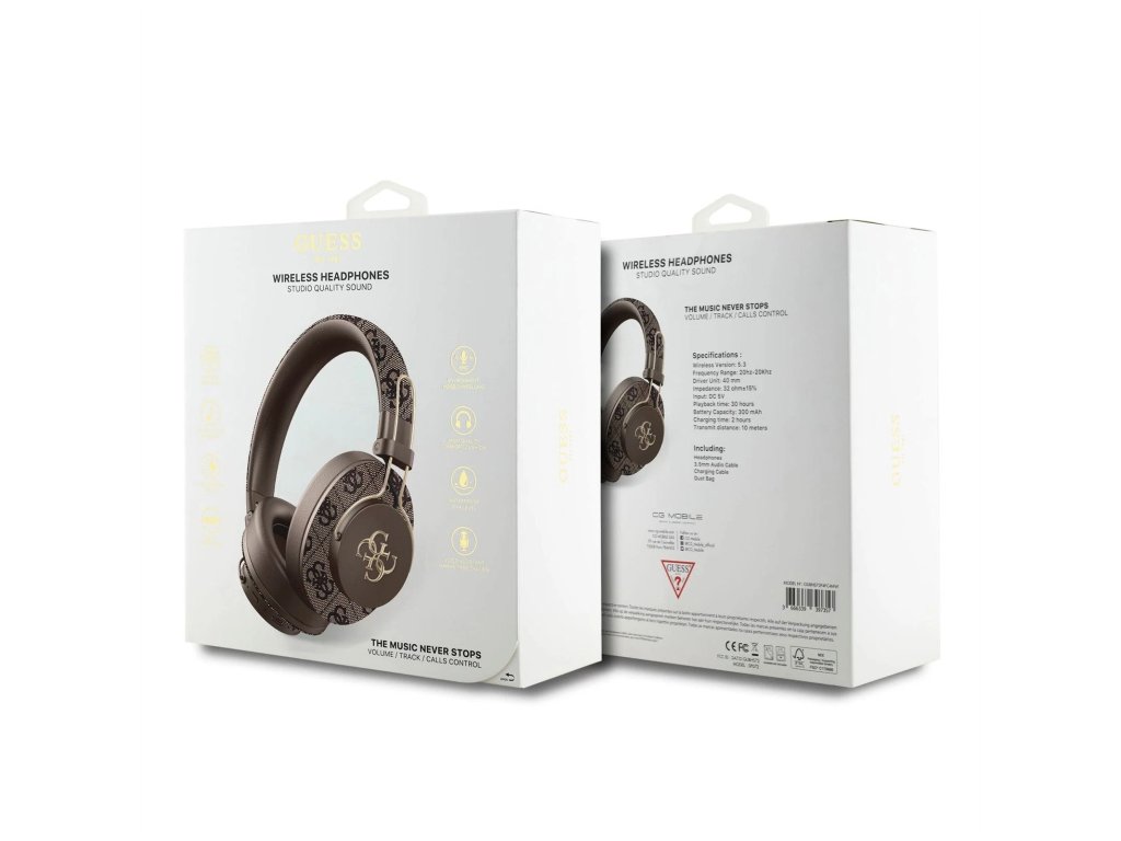 Guess PU 4G Metal Logo ENC Bezdrátová Sluchátka Hnědá